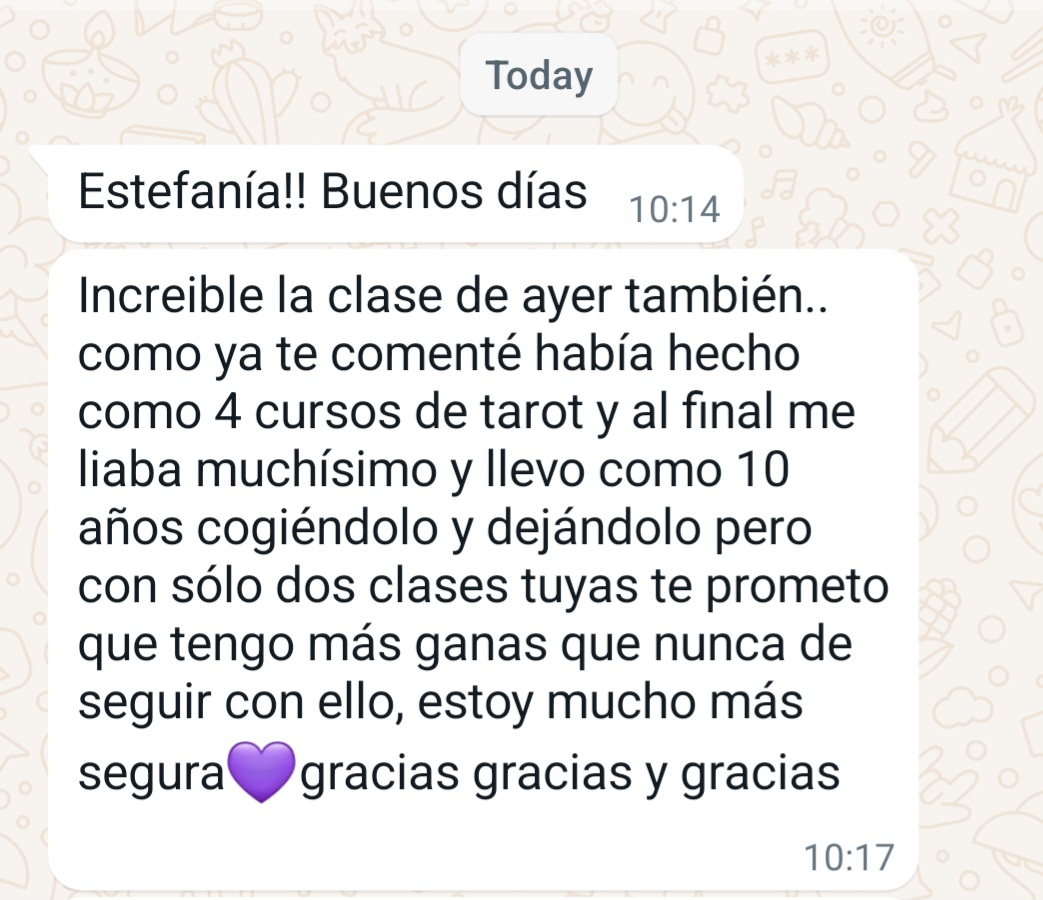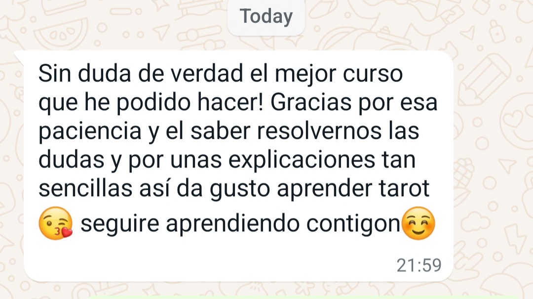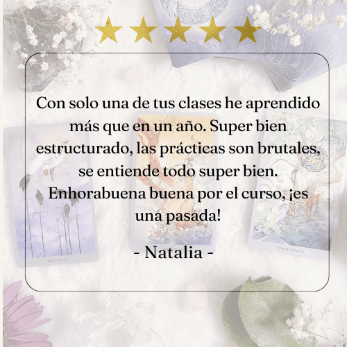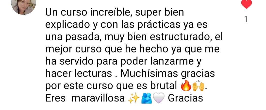 Gracias a la practicidad y efectividad de mi forma de aprender y practicar Tarot, he transformado mi vida por completo, creando mi propio negocio como Tarotista, ayudando a más de 10.000 personas a través de mis lecturas de Tarot.